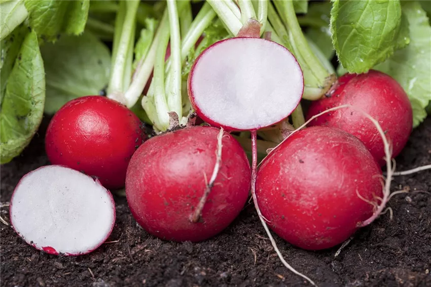 Brassica oleracea var. gongylodes Wenn es beim Keimen und Wachsen von Gemüse ein Wettrennen gäbe, dann stünde das Radieschen jedes Mal siegessicher auf Platz Eins. Innerhalb von 6-10 Tagen keimt das Wurzelgemüse und ist nach ca. 4-5 Wochen erntereif. Die Aussaat erfolgt von Mitte März bis September direkt ins Freiland. Die knackigen Leckerbissen gibt es nicht nur in Rot und rund; probieren Sie doch auch mal zweifarbige Sorten in Rot-Weiß, längliche in Zapfenform oder eine mehrfarbige Mischung mit gelben, violetten und weißen Radieschen.