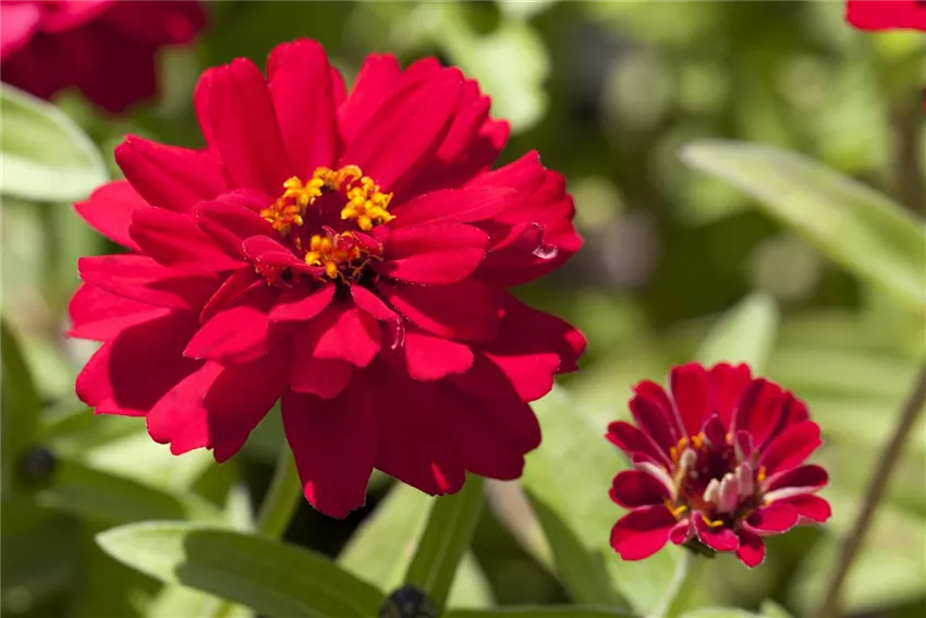 Zinnia In bunten Herbststräußen dürfen die einjährigen Zinnien nicht fehlen. Sie blühen in den typischen Farben des Herbsts: weiß, leuchtend gelb, orange, rot und rosa – entweder einfach oder gefüllt. Sie bleiben in der Vase sehr lange frisch und ansehnlich.