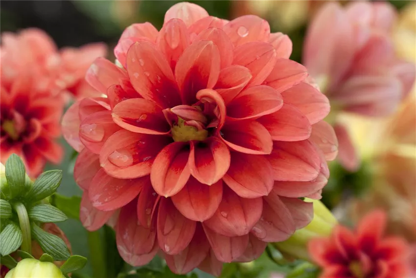 Dahlia An Sortenreichtum kaum zu übertreffen ist die Dahlie. Einfache und gefüllte Blüten leuchten in den schillerndsten Farben: weiß, gelb, orange, rot, rosa und violett. Sie sind vor allem mit anderen Herbstblühern bestens zu kombinieren und halten sich sehr gut in der Vase.