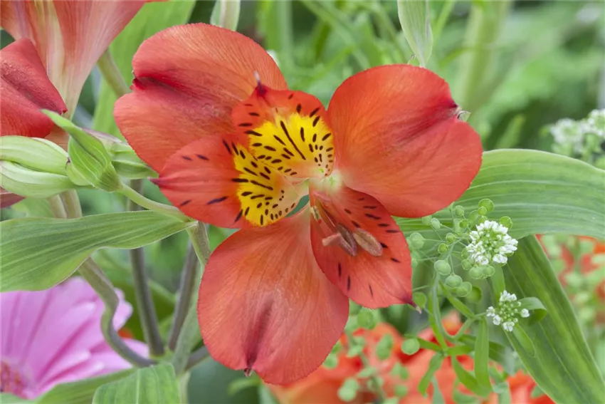 Am Ende der bis zu 150 cm hoch werdenden Blütenstiele zeigen lilienähnliche Blüten in alle Richtungen. Sie schimmern in vielen Schattierungen von Weiß bis Rot. Die Schnittblumen halten in der Vase sehr lange und sind aus gemischten Herbststräußen nicht wegzudenken.