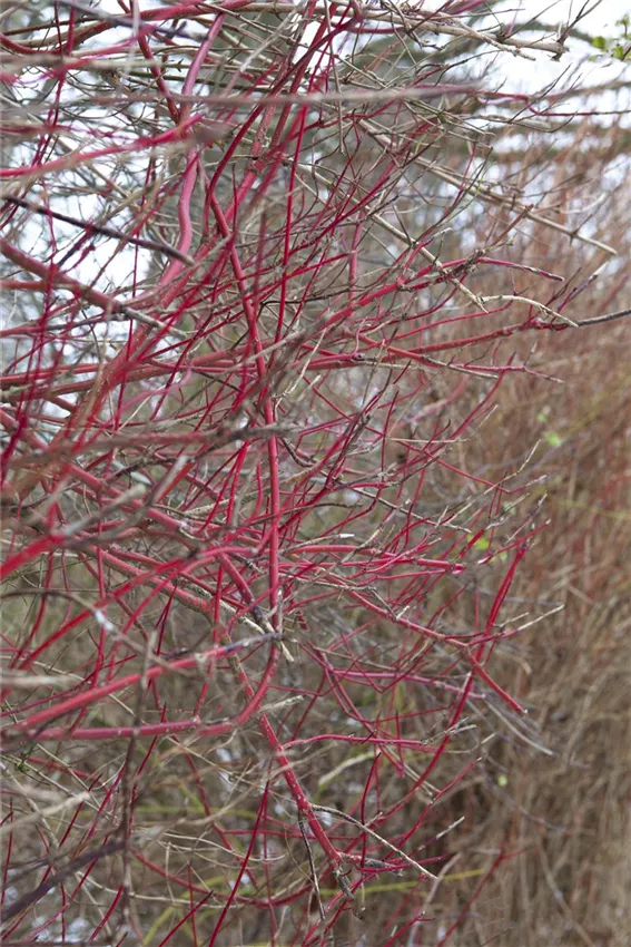 Cornus alba Viele herbstliche Pflanzen überzeugen mit bunten Ästen. Der Hartriegel ist besonders für seine roten Äste bekannt. Aber: nur die jungen Triebe sind tiefrot gefärbt. Ein regelmäßiger Rückschnitt des Hartriegels sorgt für frische Triebe, die sich dann perfekt in das herbstliche Gesteck integrieren lassen.