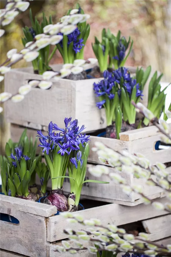 Hyacinthus multiflora Schon im Herbst können Sie sich die Blumenzwiebeln Ihrer liebsten Frühblüher sichern. Jetzt ist nicht die Blütezeit, sie ruhen noch. Aber Sie können die Blumenzwiebeln bereits vorbereiten. Dafür werden die Zwiebeln in einen Topf gepflanzt. Ob der Topf groß oder klein ist, eine Schale oder ein ganzer Balkonkasten spielt dabei keine Rolle. Wählen Sie ein Gefäß, das Ihnen gefällt und dass sie später auch im Haus aufstellen möchten. Ein Drittel des Topfes füllen Sie mit einem Erdgemisch auf. Dieses besteht zu gleichen Teilen aus Erde und Sand. Darauf legen Sie die Zwiebeln und decken sie mit weiterer Erde ab, bis das Gefäß beinahe vollständig gefüllt ist. Ein kleiner Gießrand darf bleiben.