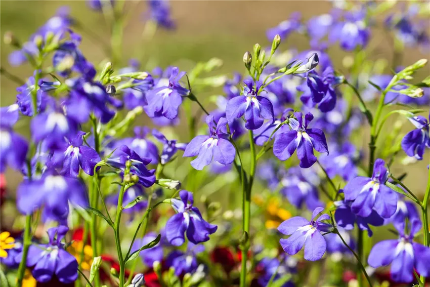 Lobelia erinus, blau Wer es lieber einheitlich mag, der kann sich an ein bestimmtes Farbschema halten und die Frühblüher nach Farben aussuchen. Besonders gut kommen die Farben Lila, Pink und Weiß zusammen daher. Besonders schön wirken die Pflanzen im Balkonkasten dann, wenn sie unterschiedliche Höhen und Wuchseigenschaften haben. Ein tolles Arrangement sind Bellis, Männertreu und Traubenhyazinthen. Die Bellis und Traubenhyazinthen wachsen aufrecht und bilden zum hängenden Männertreu einen tollen Kontrast. Wer das einheitliche Farbschema doch mit einem kleinen Farbtupfer brechen will, kann eine gelbe Primel in die Mitte setzen. Das sorgt für einen kleinen Überraschungseffekt.